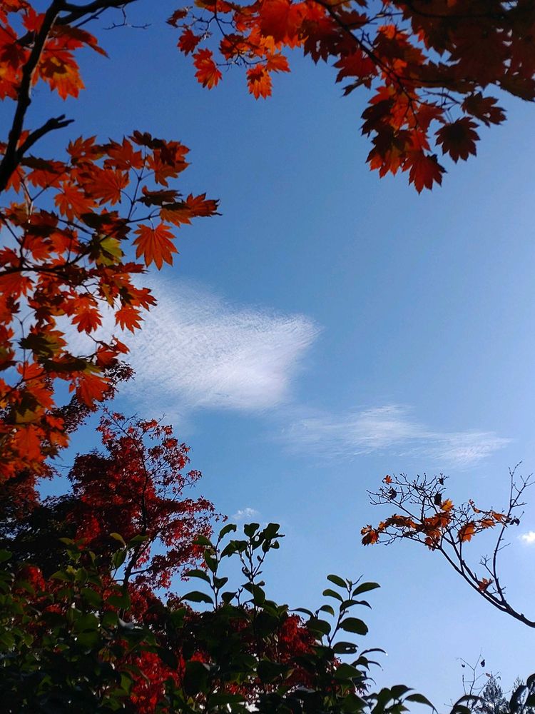 真っ赤な葉っぱと薄過ぎる彩雲