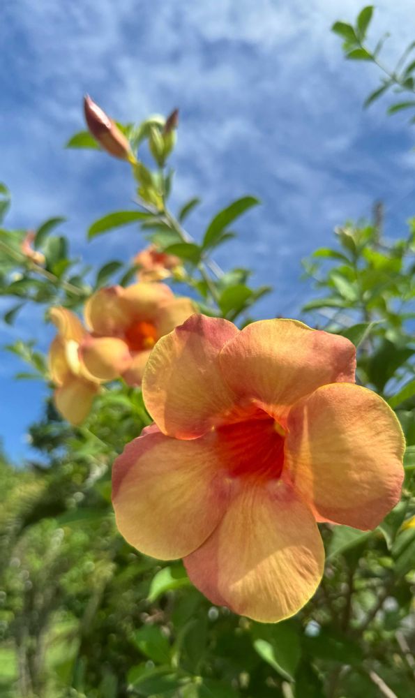 ランチタイムのオレンジアラマンダ。青い空にオレンジ色の濃淡が映えますね。