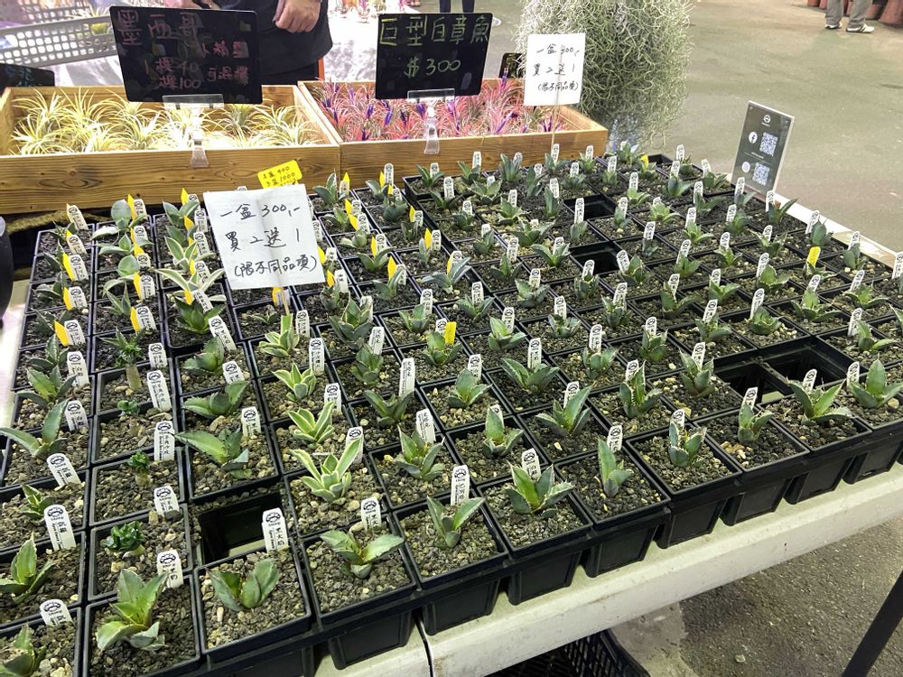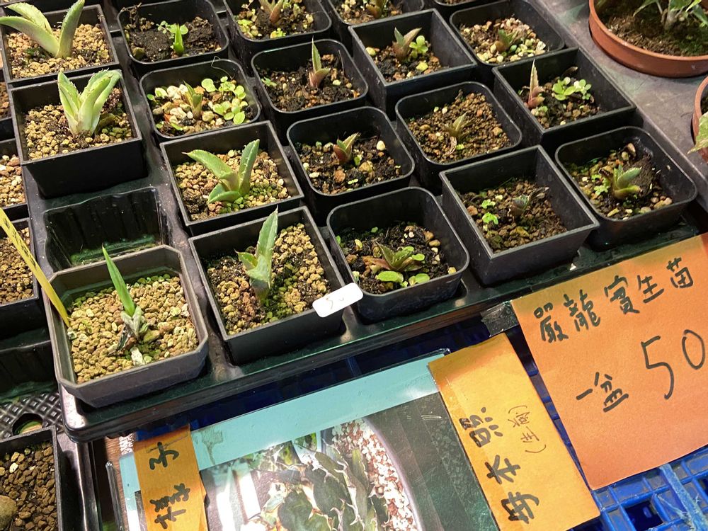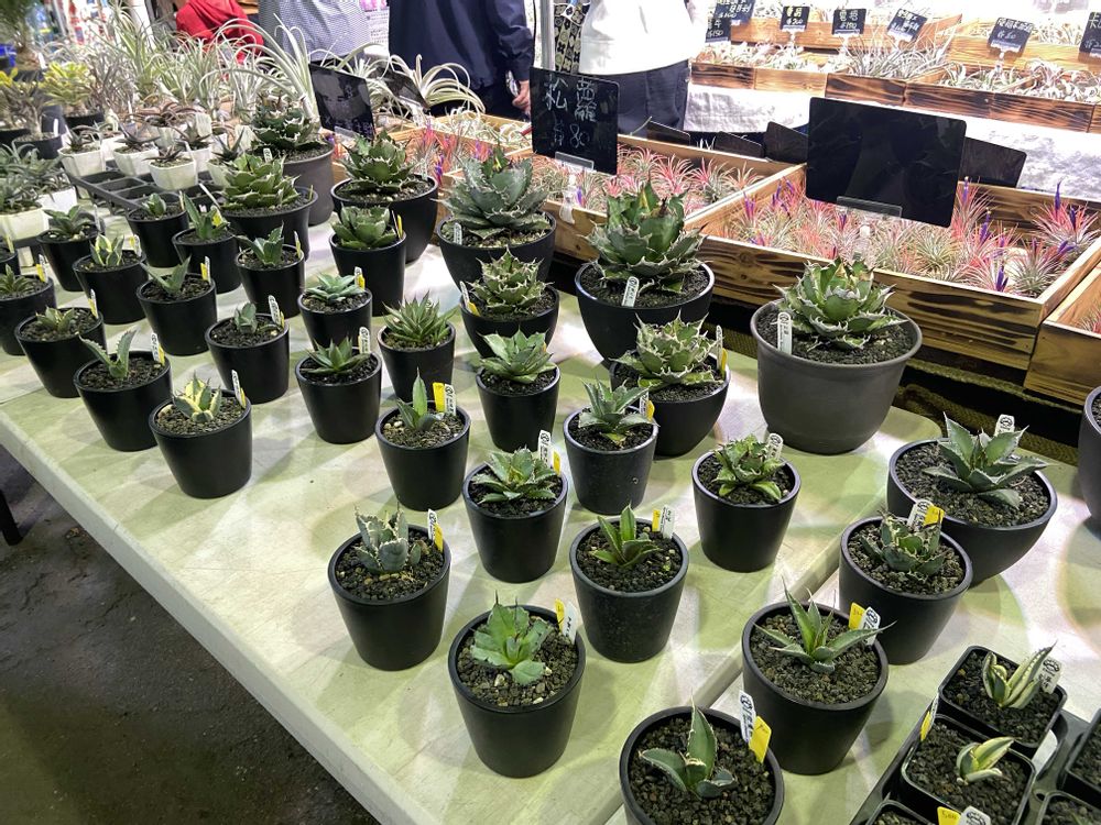 このとおりアガベはたくさんあるし、小さいので500円、ちょっとレア株?ぽい子株が2000円、大きくなると5~6000円のものからあって、値段は日本と変わらなかった。