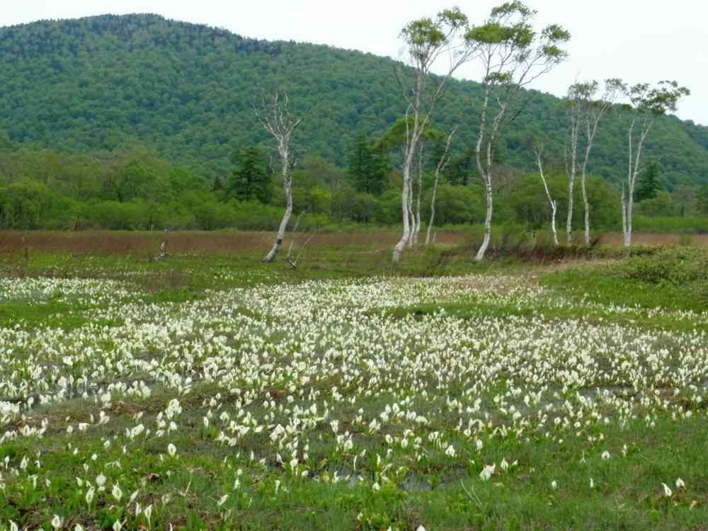 尾瀬ヶ原へ出る前には、こんなミズバショウの光景を楽しめました。
