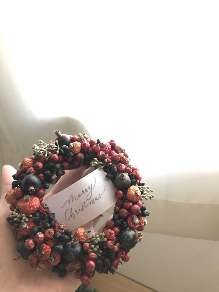 クスクスさんのクリスマスリース,バラの実,Merry Christmasの投稿画像
