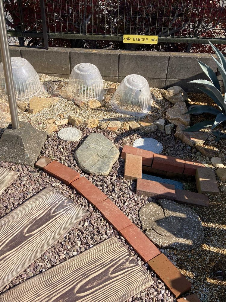 ある程度耐寒性のあるものを植えていますが、子株達には苗ドームを被せました。