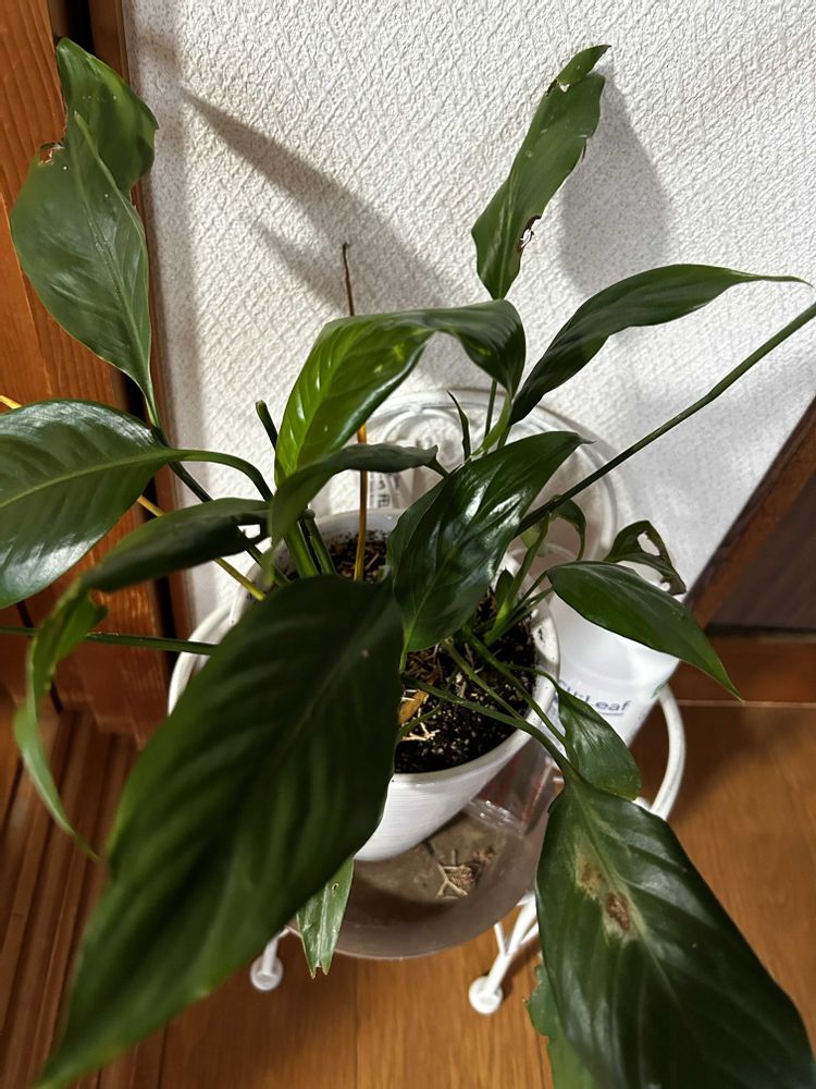ひと月後の写真を撮りそびれて、ひと月半後のスパティフィラムです。