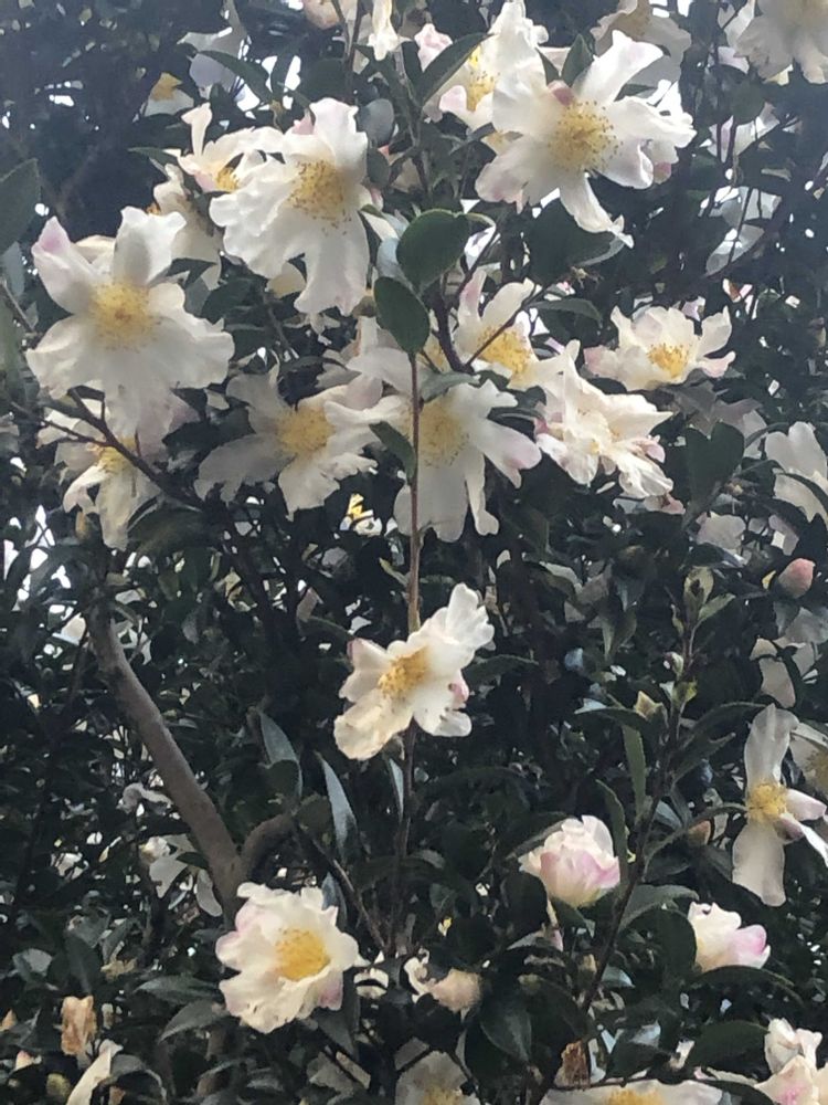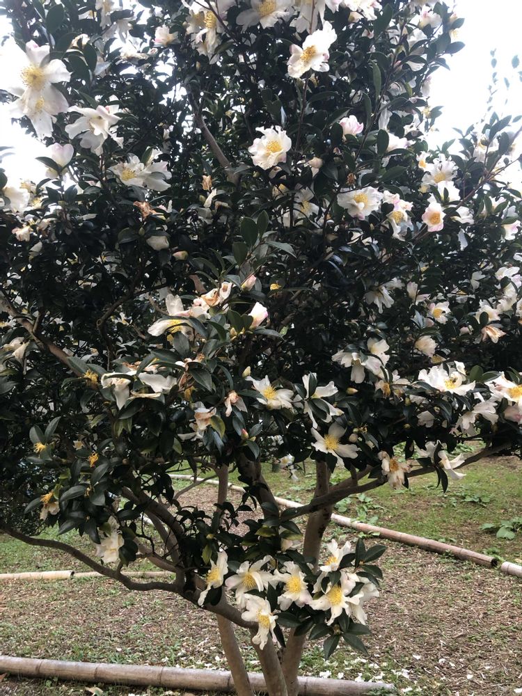先日、万博公園にて白いお花「ハルサザンカ」をパチリ!📸🌼🌿😄🌞👌