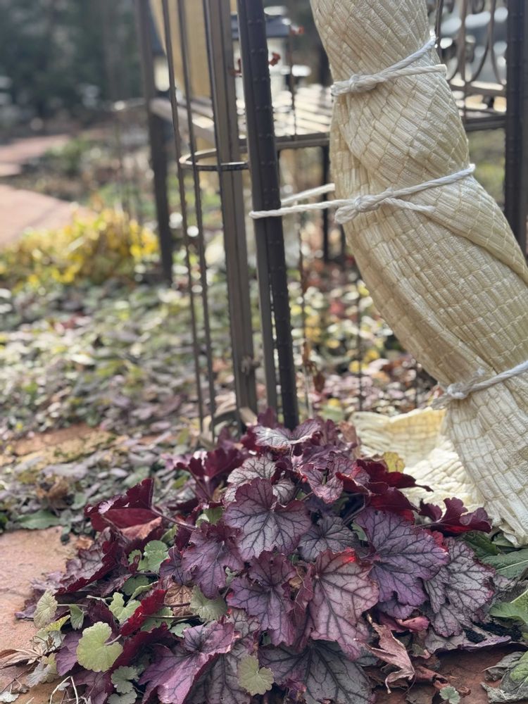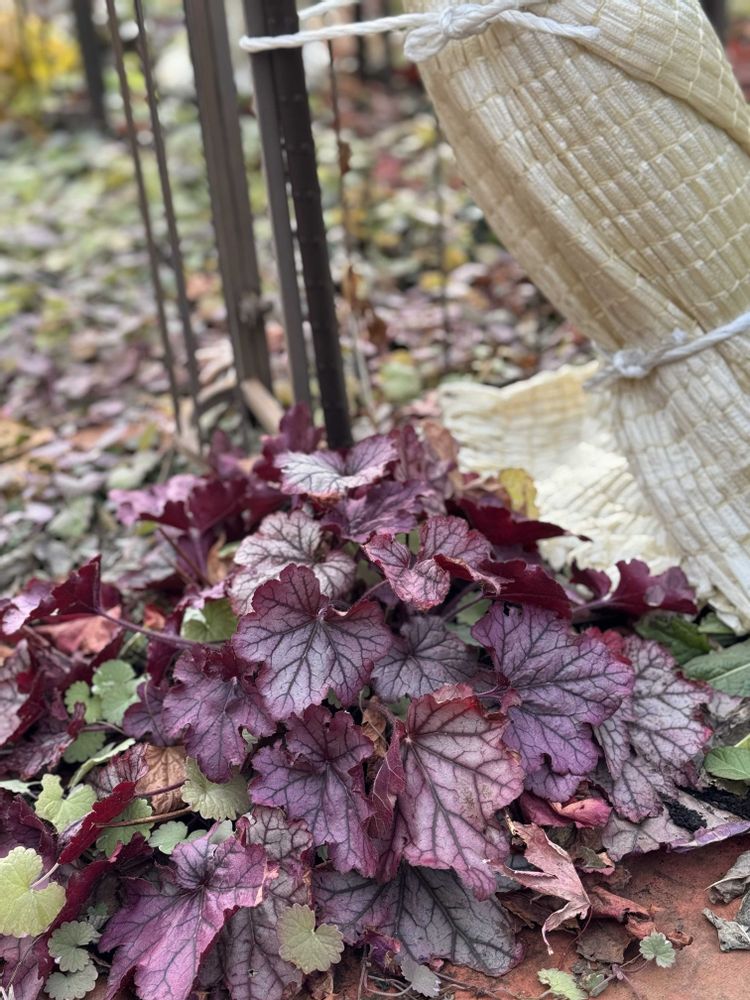 ①もぅひとつのヒューケラさん🍂と冬囲いしたバラ🌹さん💕