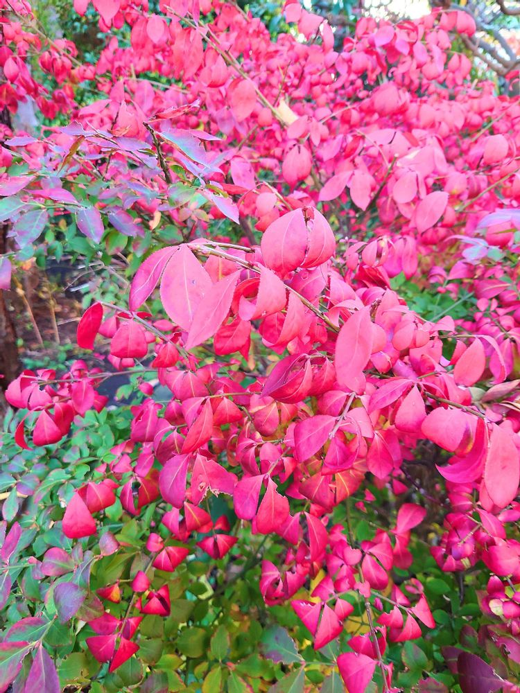 庭のニシキギがこんなに綺麗に紅葉しています。