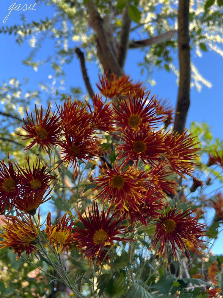 3期目はパールアカシアの株元に地植えしていますが、キクは何度剪定しても伸びまくり悩みます💦