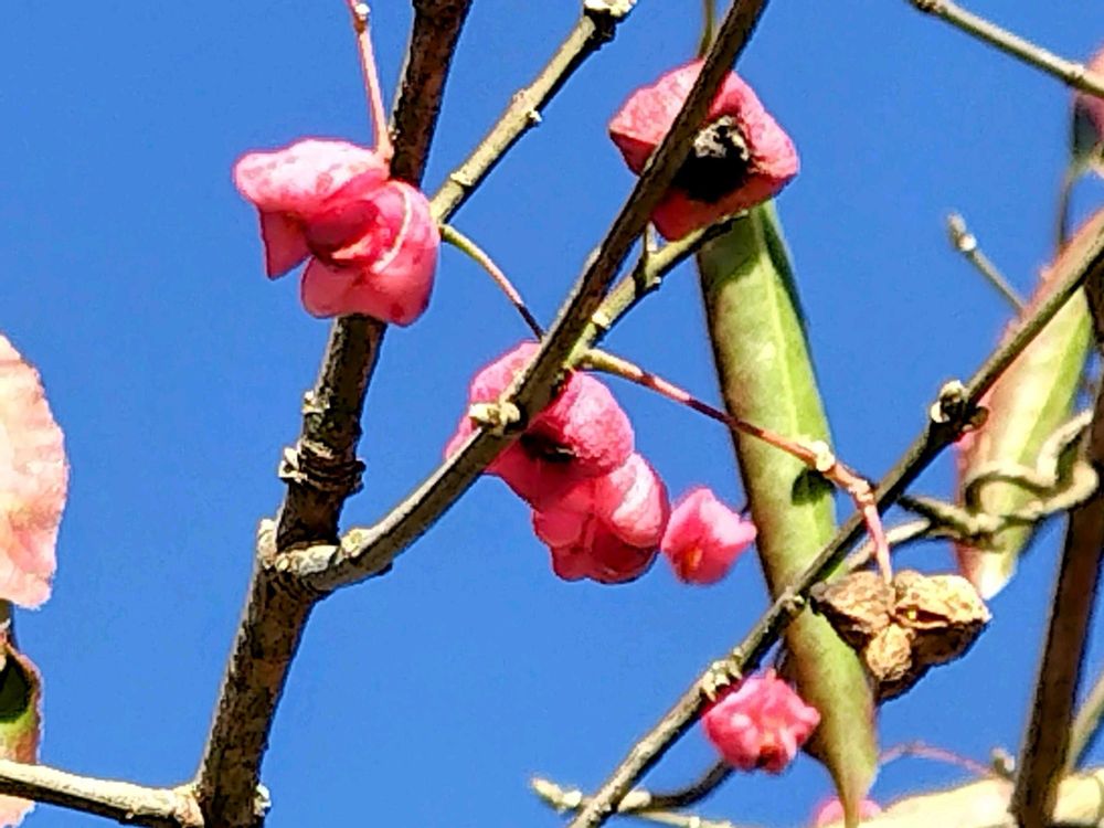 途中綺麗なピンク色に色づいたマユミの実や草丈も低く見落としそうなほど目立たない感じで咲いている白い菊の花を見かけました🥳