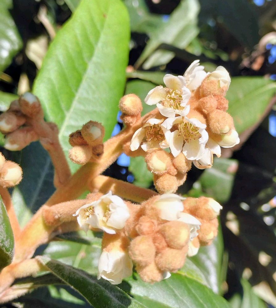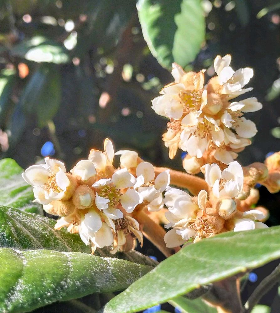 地味だけれどかわいいびわの花が咲いています🍀 🐪🐫