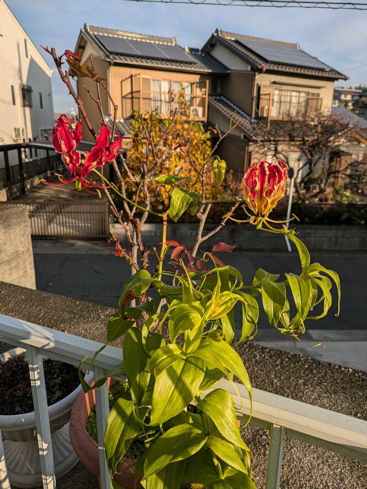 グラリオサ 冬ならではのこの姿 本来の5月なら、花びらが広がります。