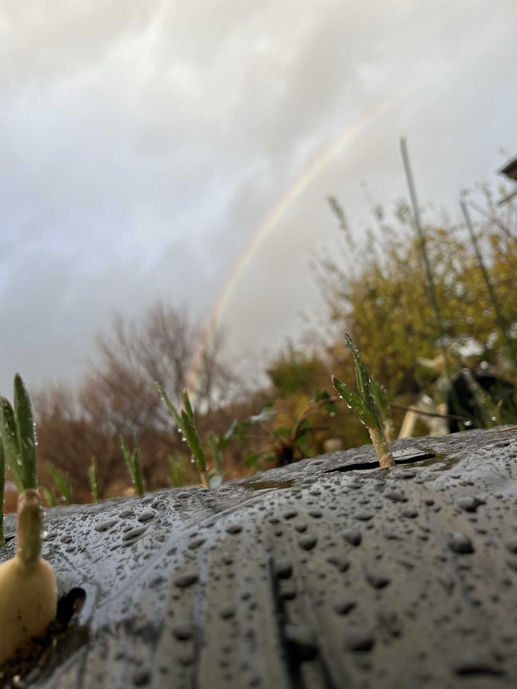 雪になると虹は見られませんから、冬前の名残の虹でした。今はタマネギもニンニクも雪の下です(^.^)