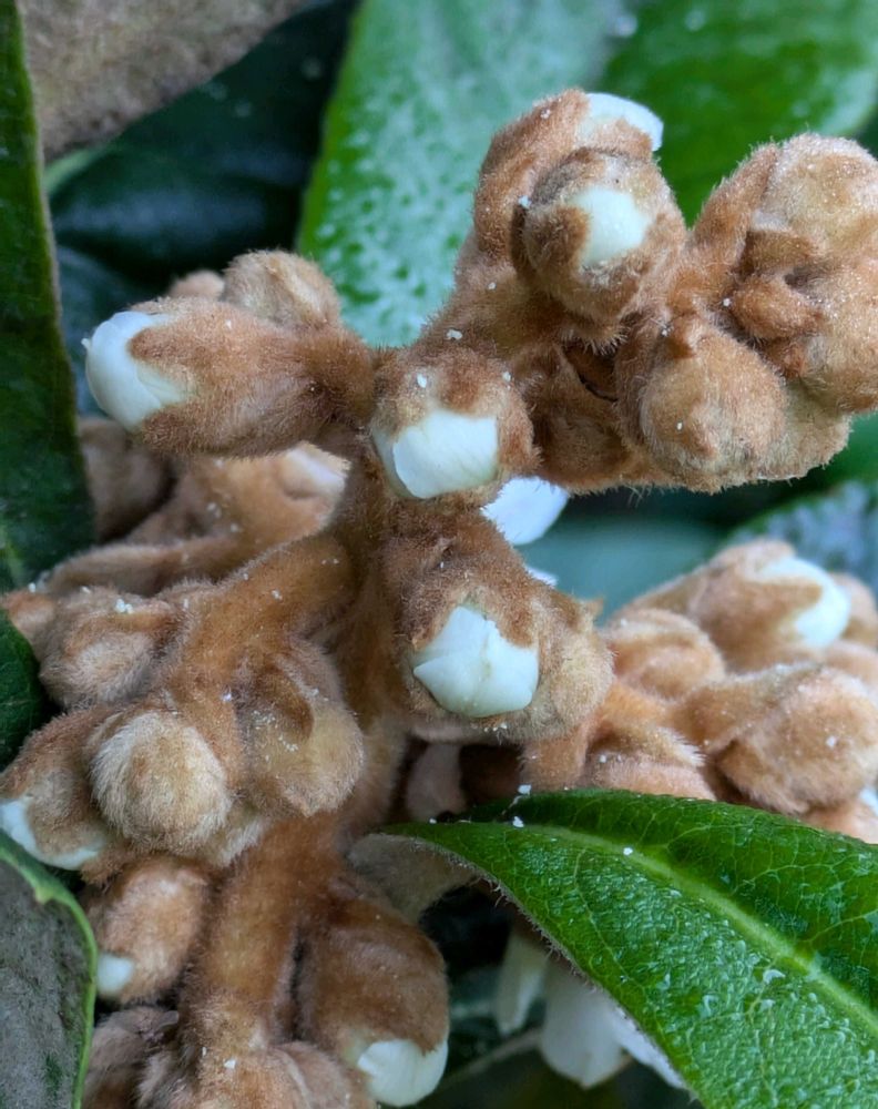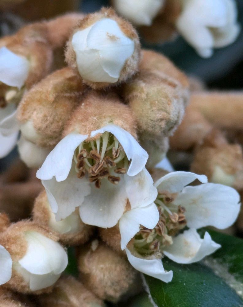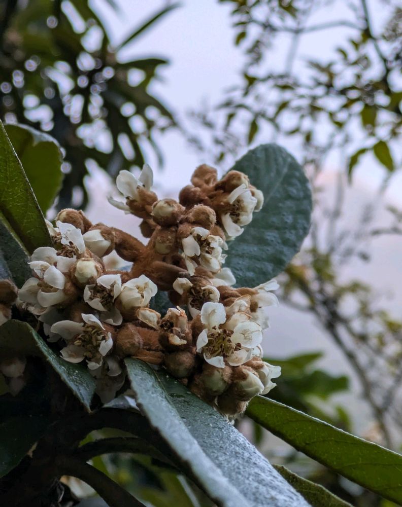 こんなに微細な枇杷の花は見たことがありませんでした。葉の裏側の綿毛も可愛い。
