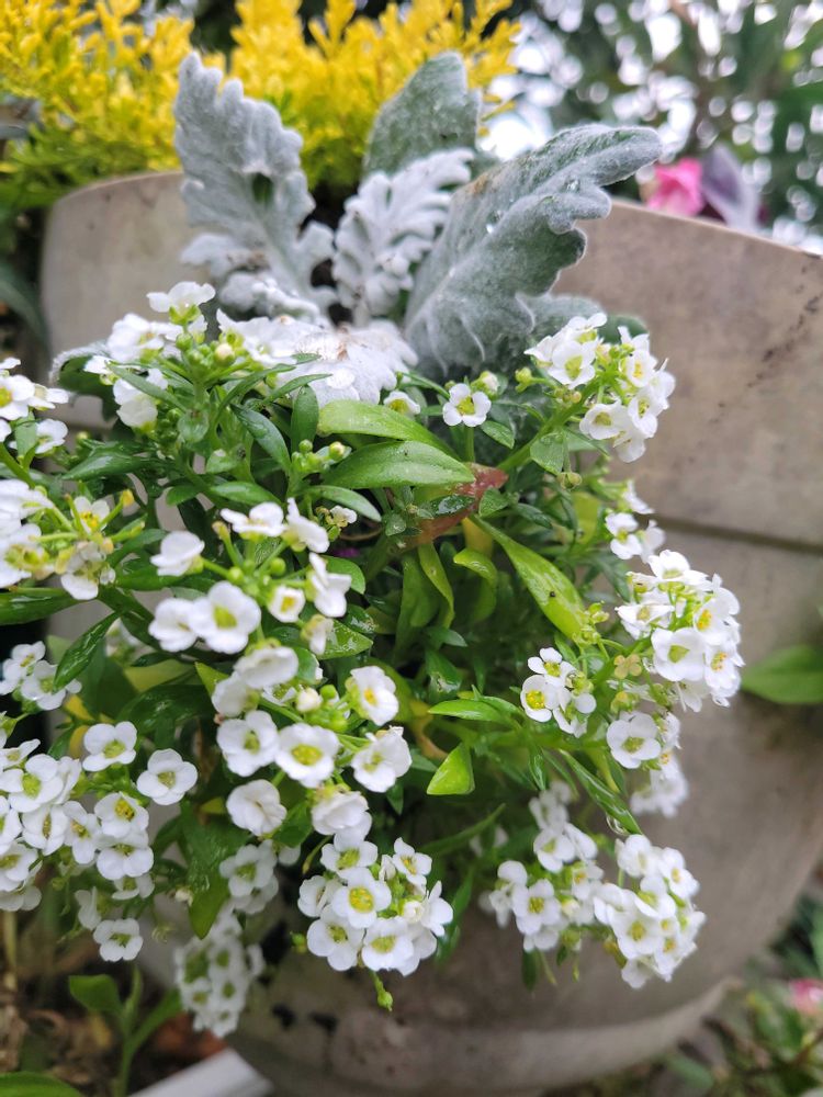 ④寄せ植えの中のアリッサム