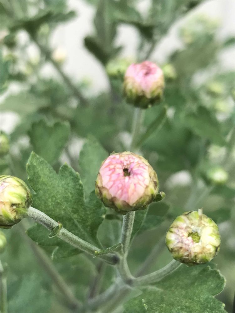 ずーっと小さなつぼみのままだった小菊がやっとほころびはじめました❣️