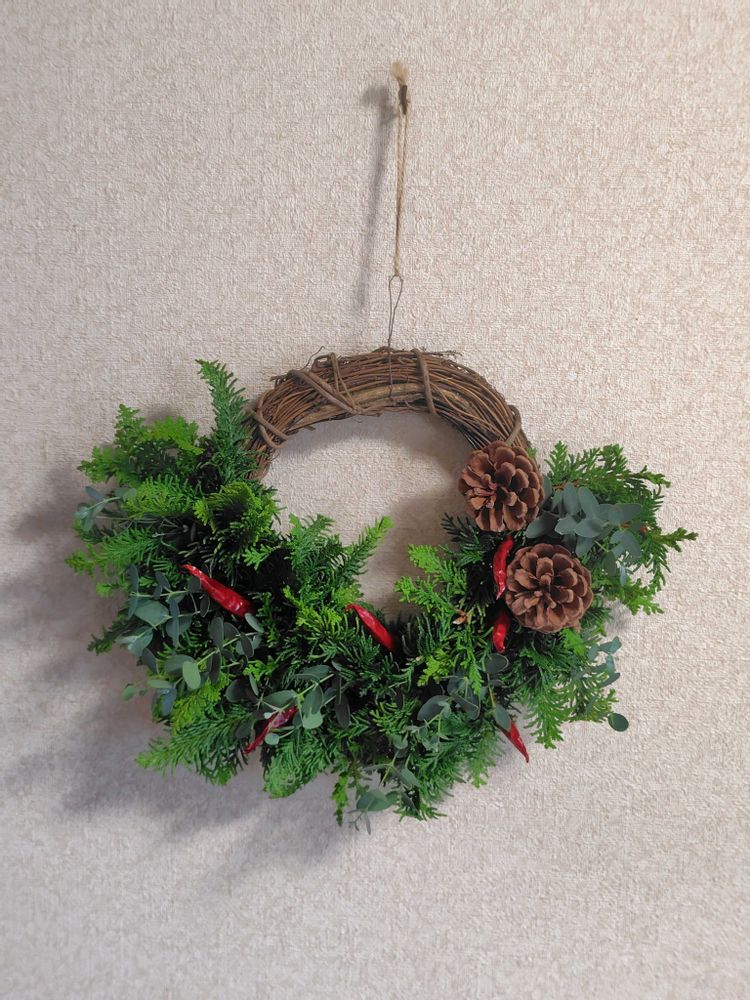 毎年だいたいヒムロスギを使っていましたが、今年は使わず、ハーフなのもクリスマスリースでは初めてです。