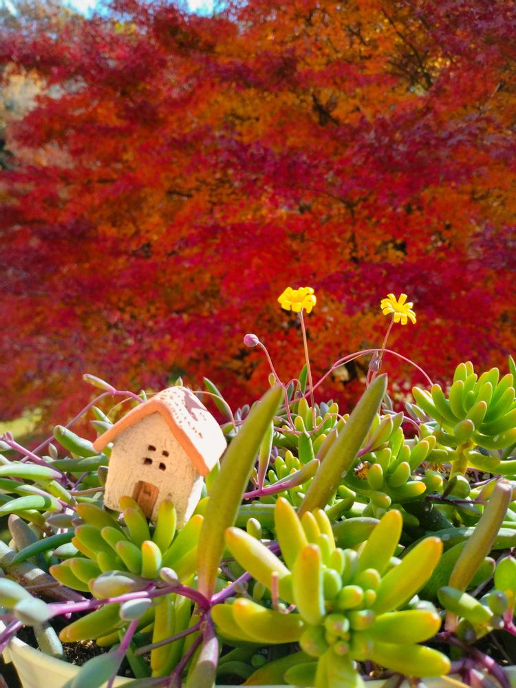 セネキオ属に"グリーン・ネックレス"があります。紅葉はしませんが,ホワホワした可愛い花を沢山咲かせてくれるので,オススメですよ。園芸店でも,吊り鉢仕立てが,よく売られています。