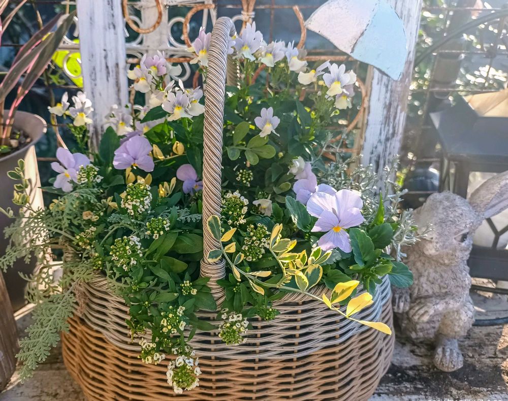 種まきビオラ'ヘブンリーブルー'を使って寄せ植えを作りました。
