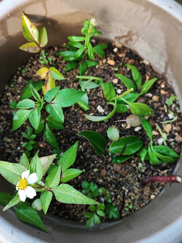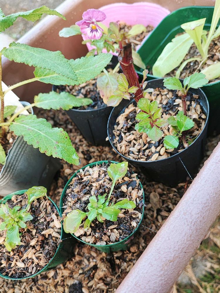 昨日?挿し芽パンビオなどが発根してたのでポット上げしといたミニミニ苗たちも一応元気そうでした。あとはウィンターコスモスっぽい雑草が元気だけど意外と発根しません。