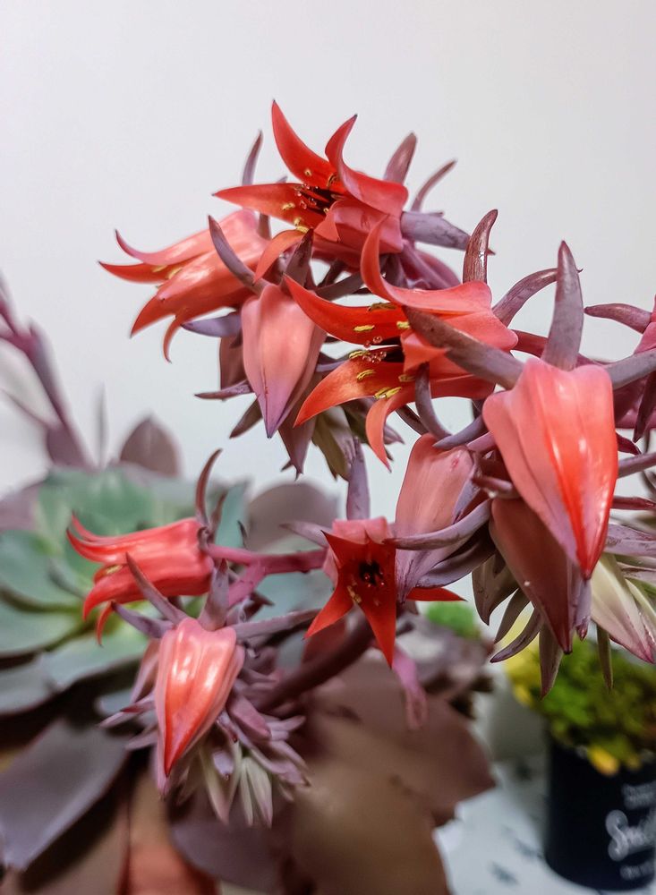室内に移動して葉っぱが緑色になってきたアフターグローに今年2回目のお花が咲きました😄