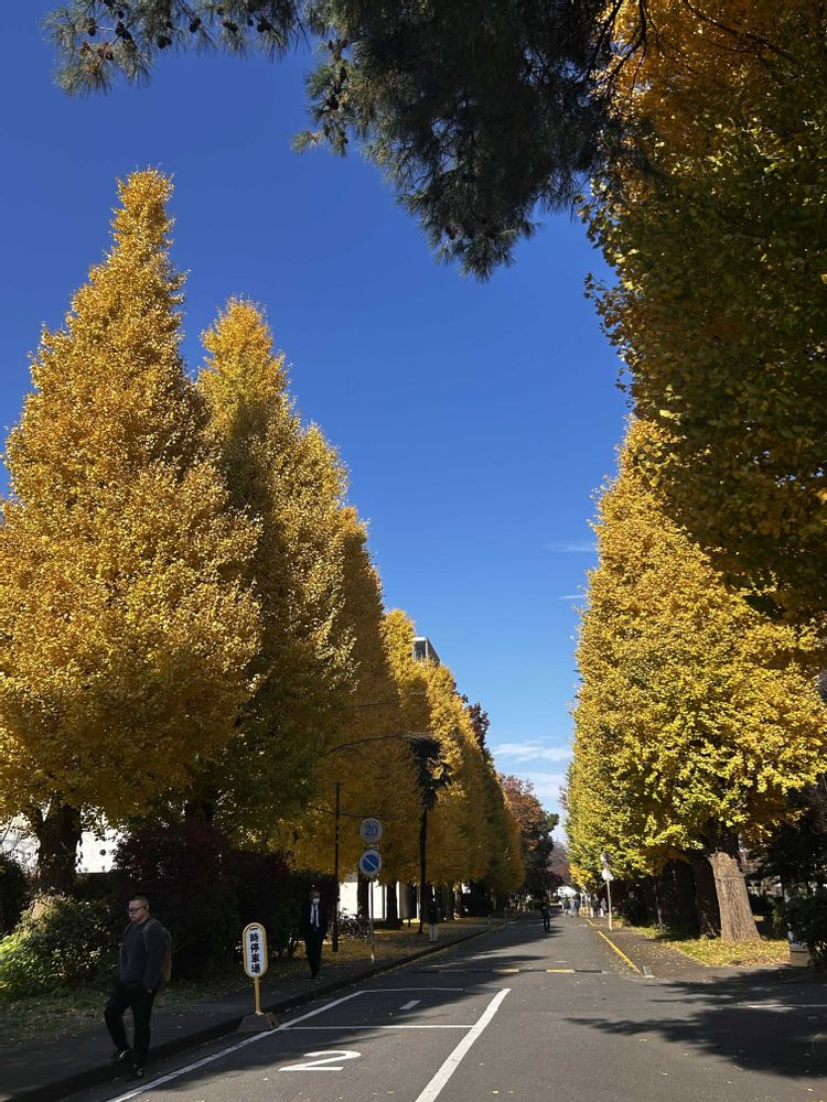 途中の大学構内の銀杏並木が色づいていたのでちょっと🤏寄り道