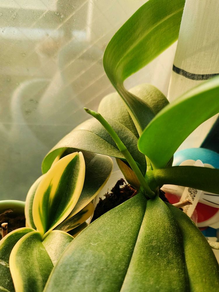 年明けにお値下げでお迎えした胡蝶蘭、花茎が伸びてきました🥳🎉🎉