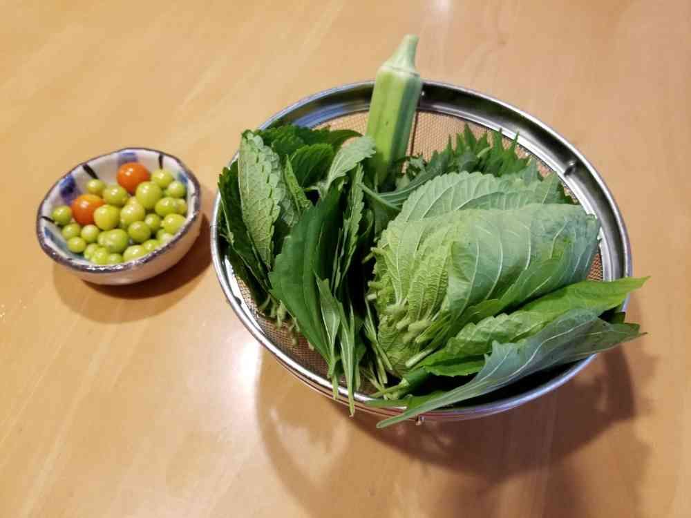 たいりょうにしそさんとえごまさんを収穫😄。その境界線がおくらさん。