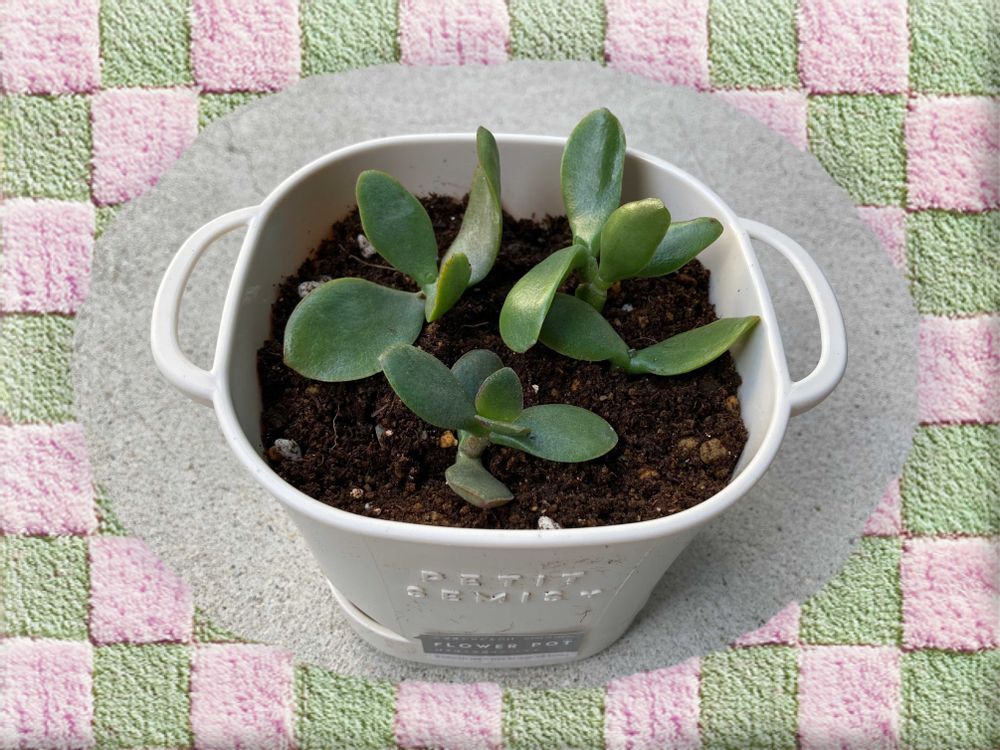 今日はまだ暖かかったので、金のなる木を植えました✨