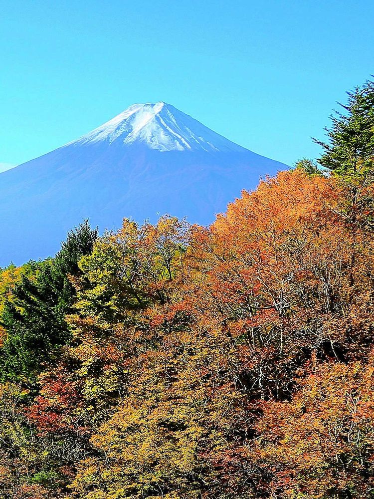 山梨県の三つ峠付近からの紅葉でとても綺麗でした。