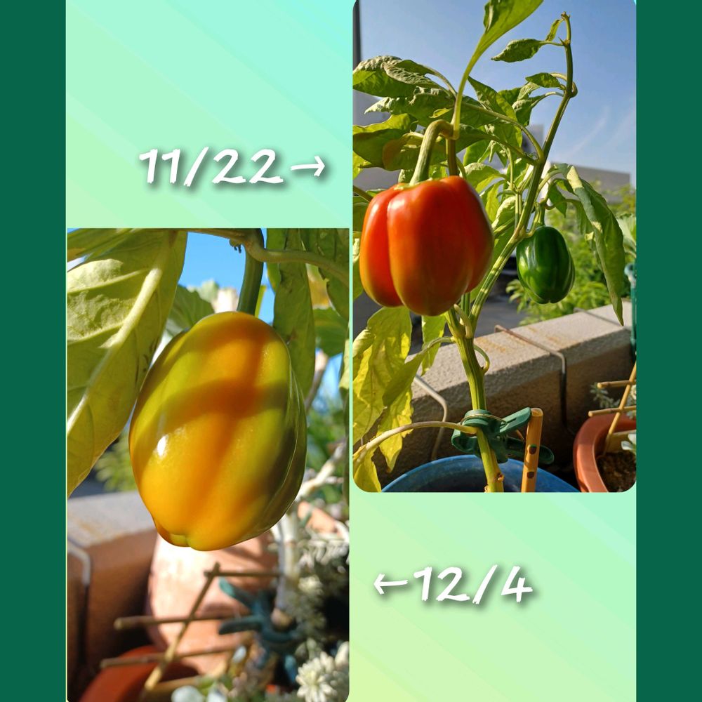 この時のグリーンパプリカさん💚黄色💛と思ったらなんかオレンジっぽくなって来ましたよ🧡