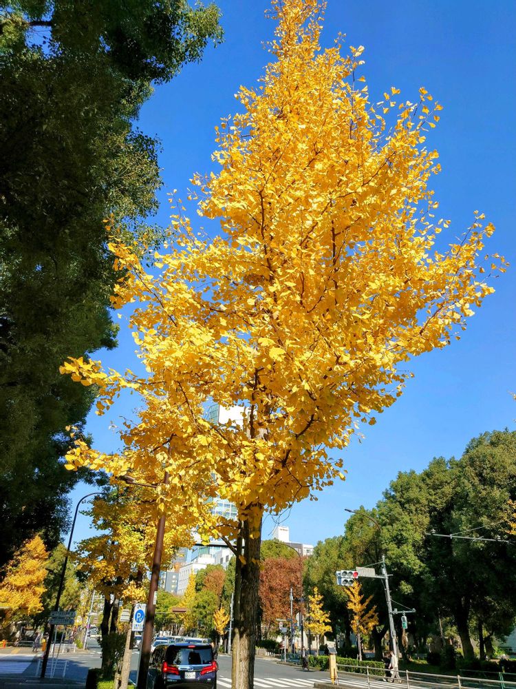 今日の昼休み、散歩途中に見かけたイチョウ。