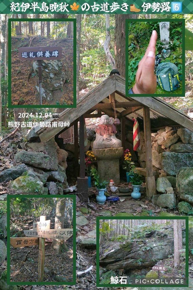 ここも古道沿いに史跡がやたら多い。道がきつい八鬼山峠には行き倒れ巡礼者の慰霊碑は跡が残っているだけだが半分の高さしかないこの峠には慰霊碑が3つも残っている。長い旅路の最中に亡くなった巡礼者に思わず手を合わせた。もう少し南に下った太地はクジラで有名だがこの峠に鯨石があるのが面白い。ひょっとしてこの辺りでも昔捕れたかも。