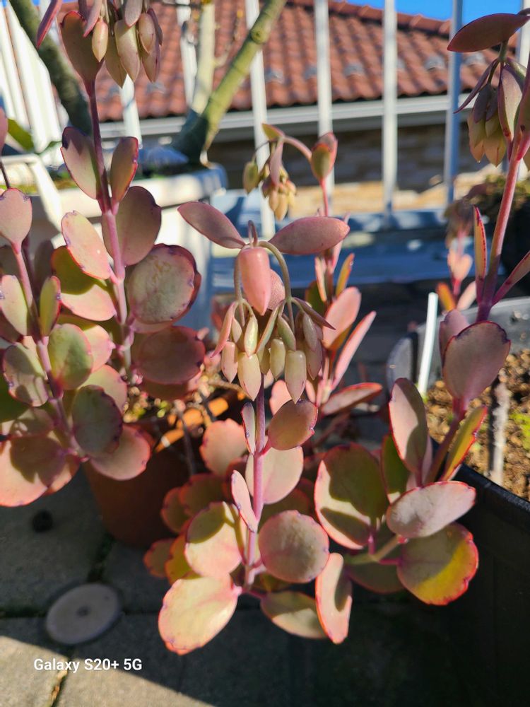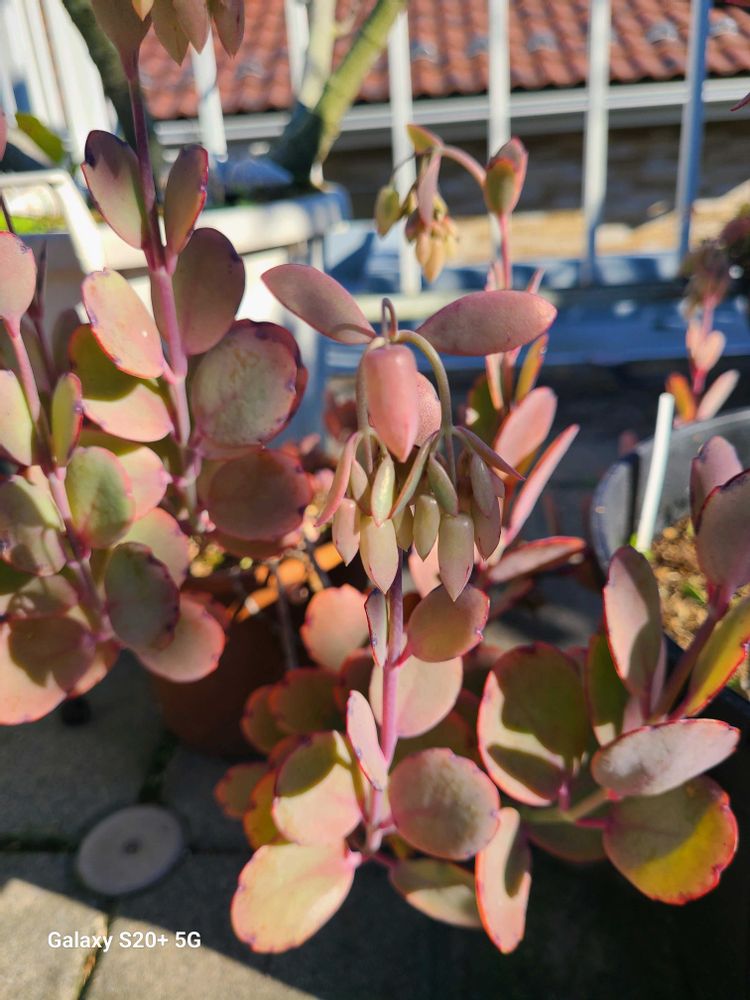 釣鐘状の赤い花が咲く、カランコエ胡蝶の舞の蕾が沢山着いてきました。