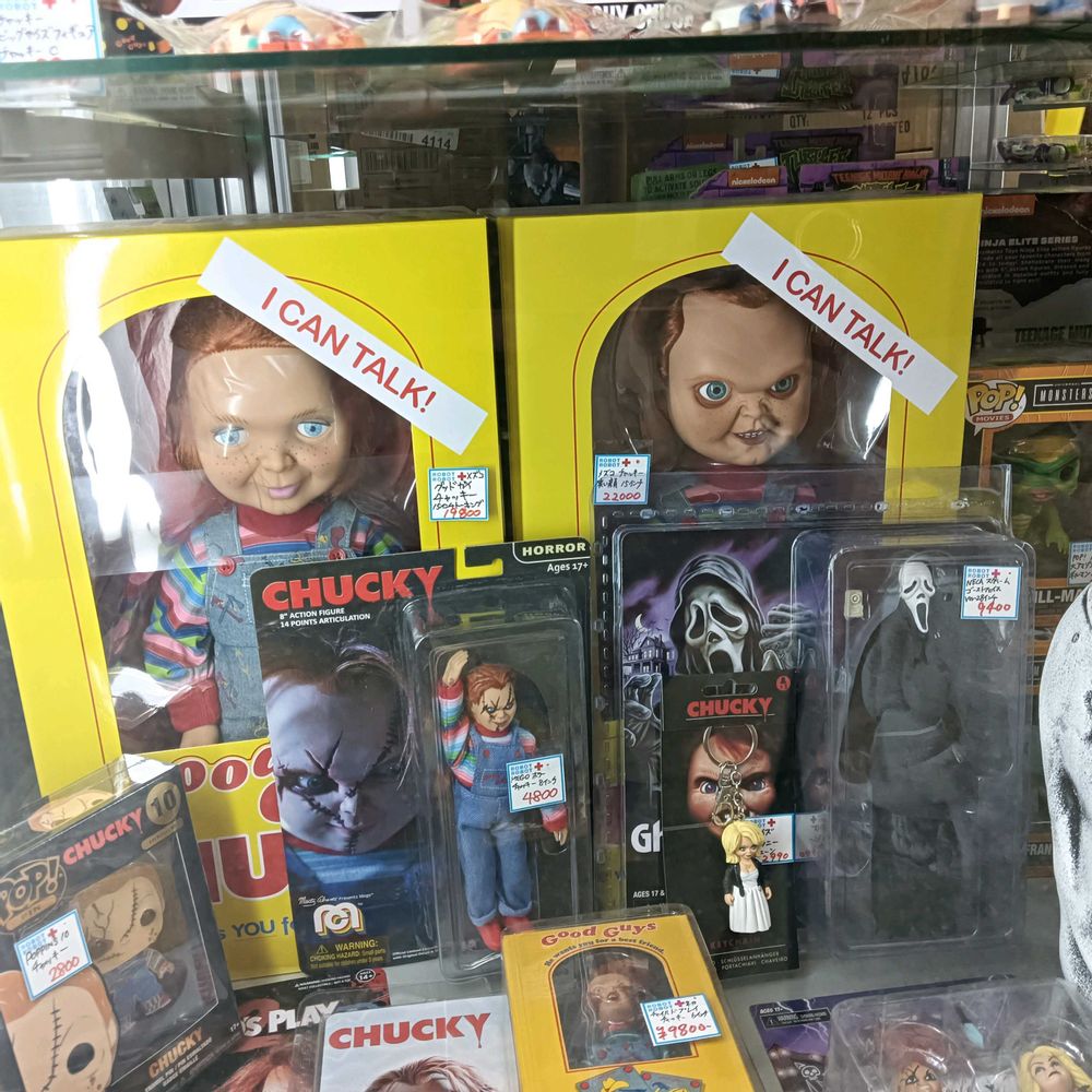 あとはチャッキーの人形も欲しかったなー。でもよく見たらI CAN TALKって書いてあったからやめた。夜中とかしゃべったら怖いですやん、、、
