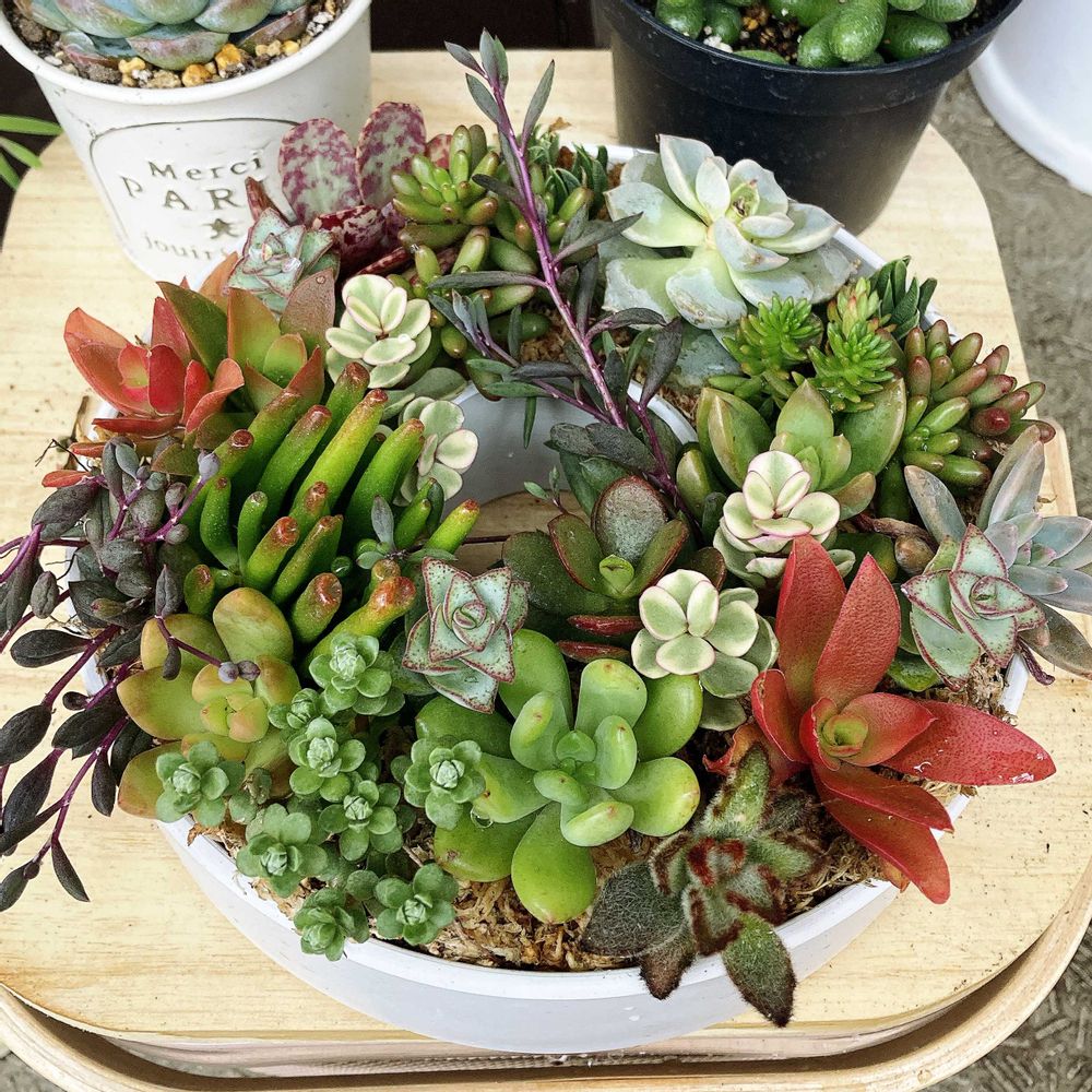 多肉植物の寄せ植えワークショップに参加したら、多肉ちゃんにハマってしまいました。 最近育て始めたばかりの初心者🔰です。2024.2〜 ハンドメイドも大好きで、元々デコパージュ(ペーパーナプキンを使って様々な物に貼り付けて加工する)を教えたりもしていました。