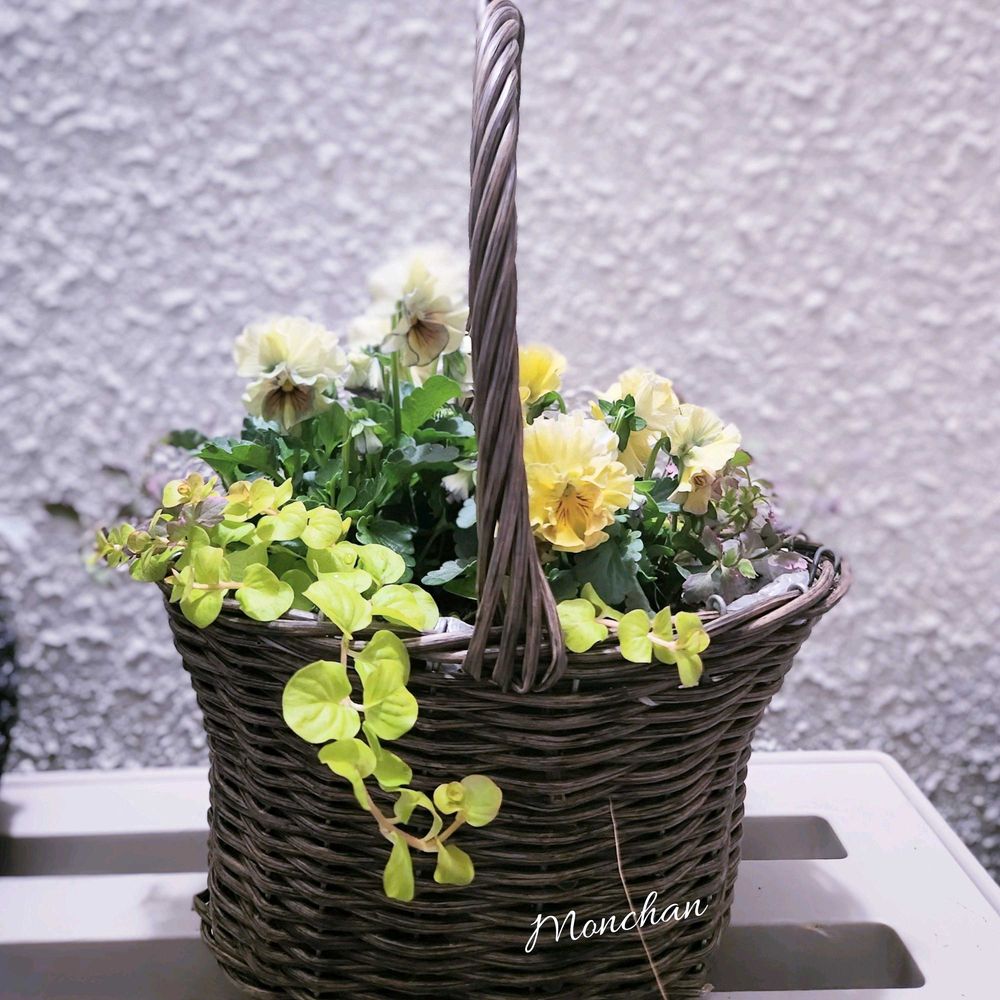 バスケットねらいでゲットしたので、植え替えて、洗ってビニルをはって🧼🌀💦再利用です☺