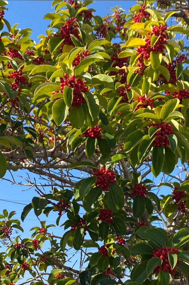 近くに街路樹にしてある道路に、たわわに実って青い空に映えています❤️