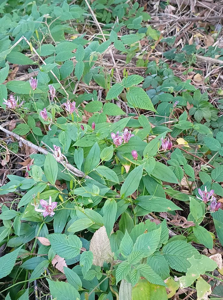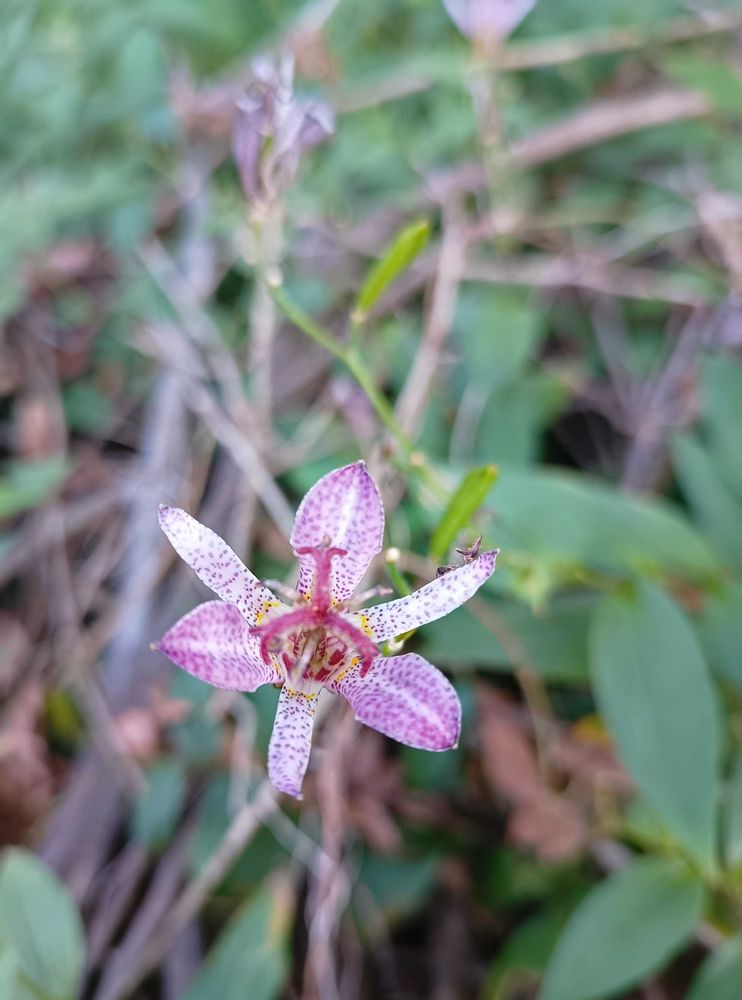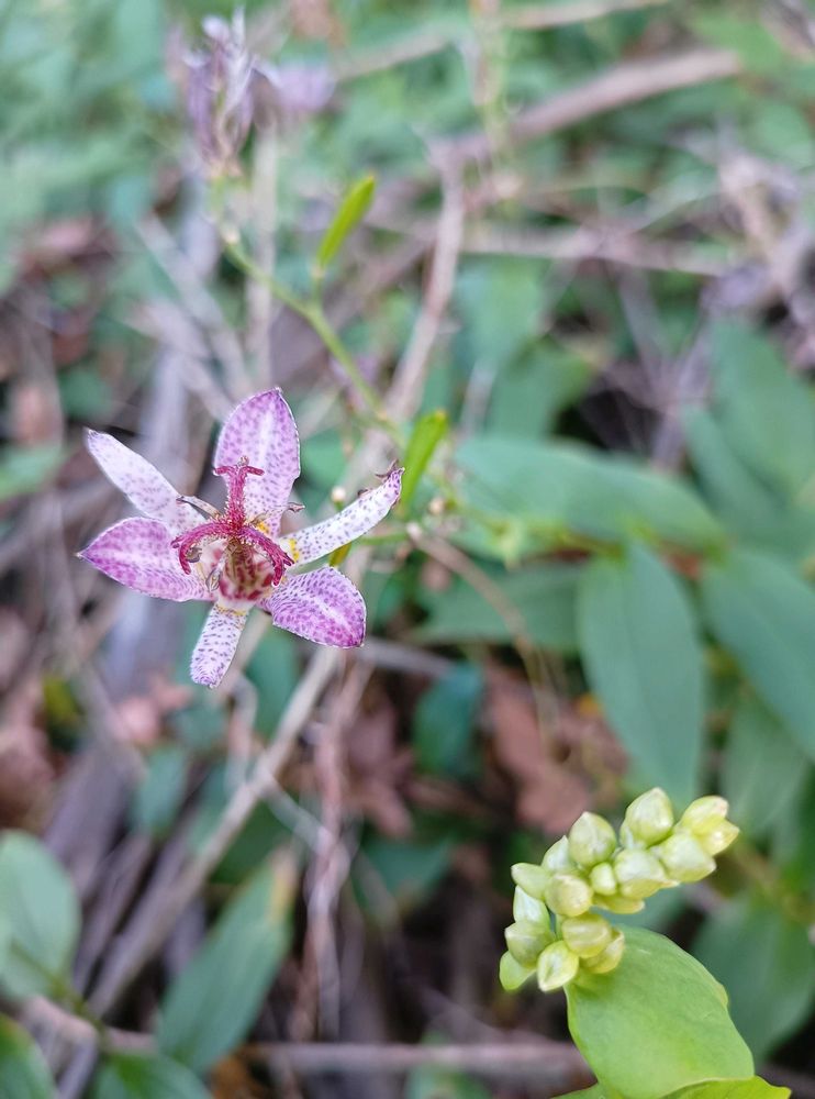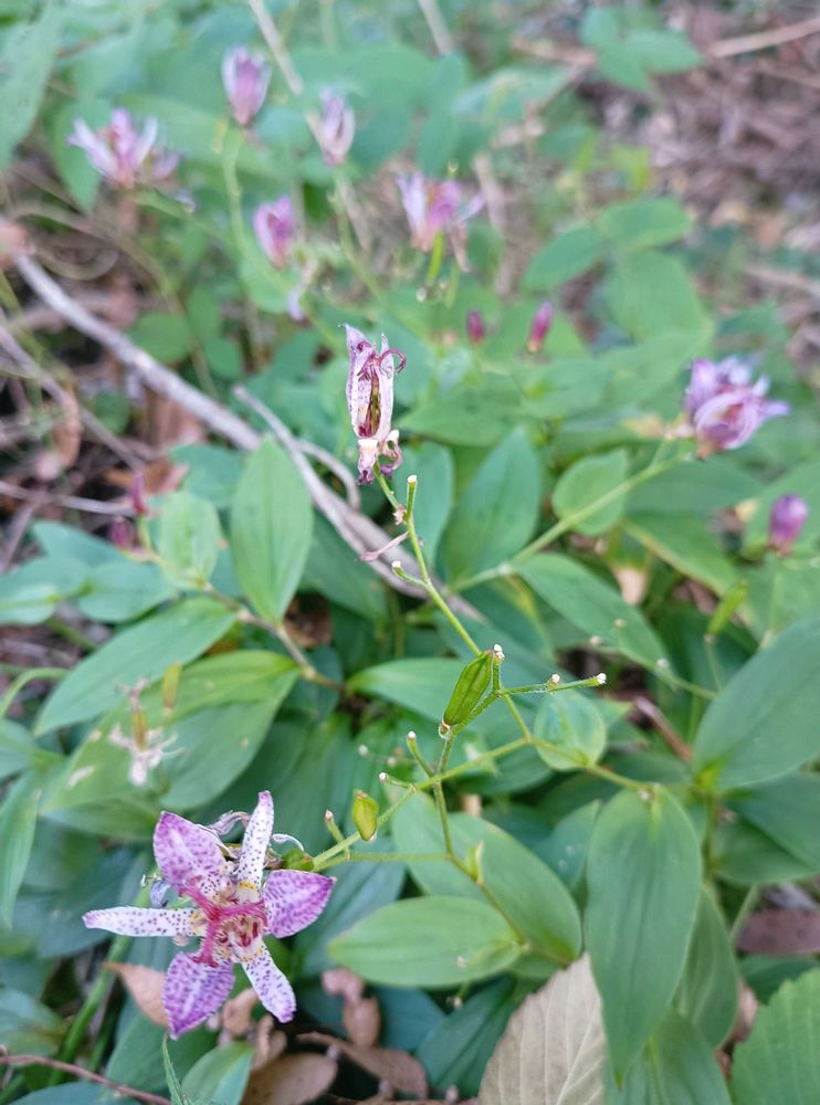 こちらでもホトトギス、ワンコのお散歩をする林の中にまだ咲いています✨💜🎶
