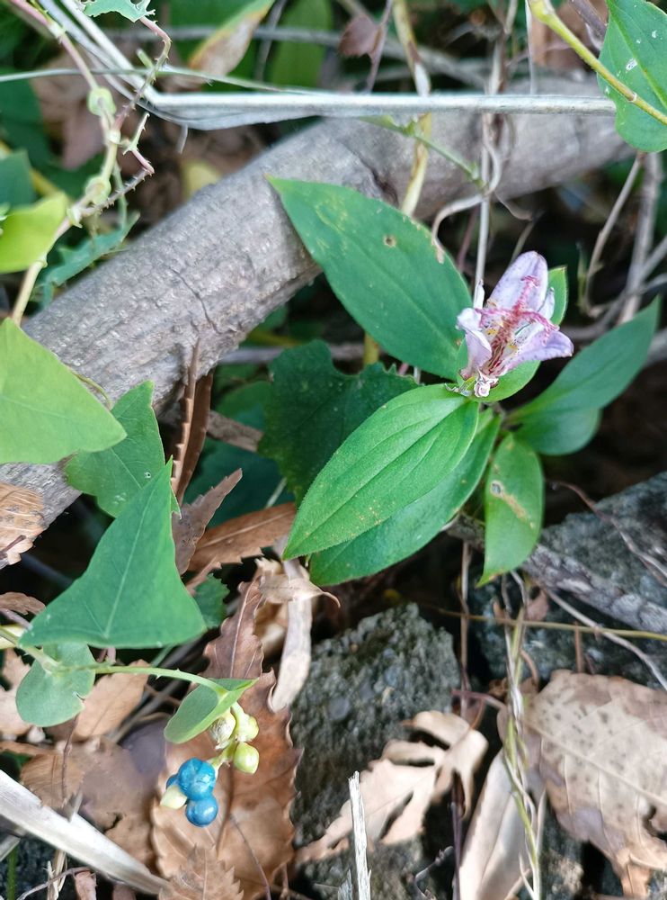 ホトトギスの花が可愛いですね、水色のイシミカワの実も綺麗です🥰