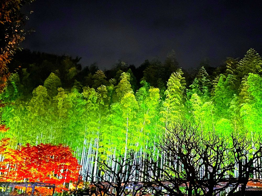 紅葉のライトアップ❗️見てみたいなぁ😍紅葉じゃないけど、最後の竹林のライトアップが圧巻ですね❗️