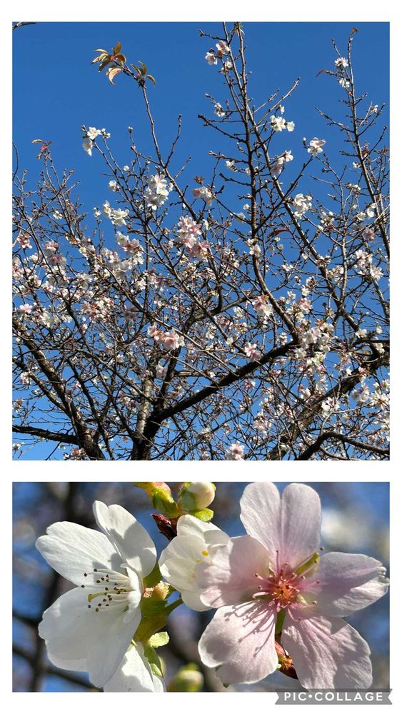 秋冬にチラチラと咲く桜のようですが‥これだけ咲いてるとまるで陽気に誘われて狂い咲きしているようですね🌸春に咲いてくれるのか‥心配になります☺️投稿にはないですが紅葉🍁と桜🌸絵になります👍