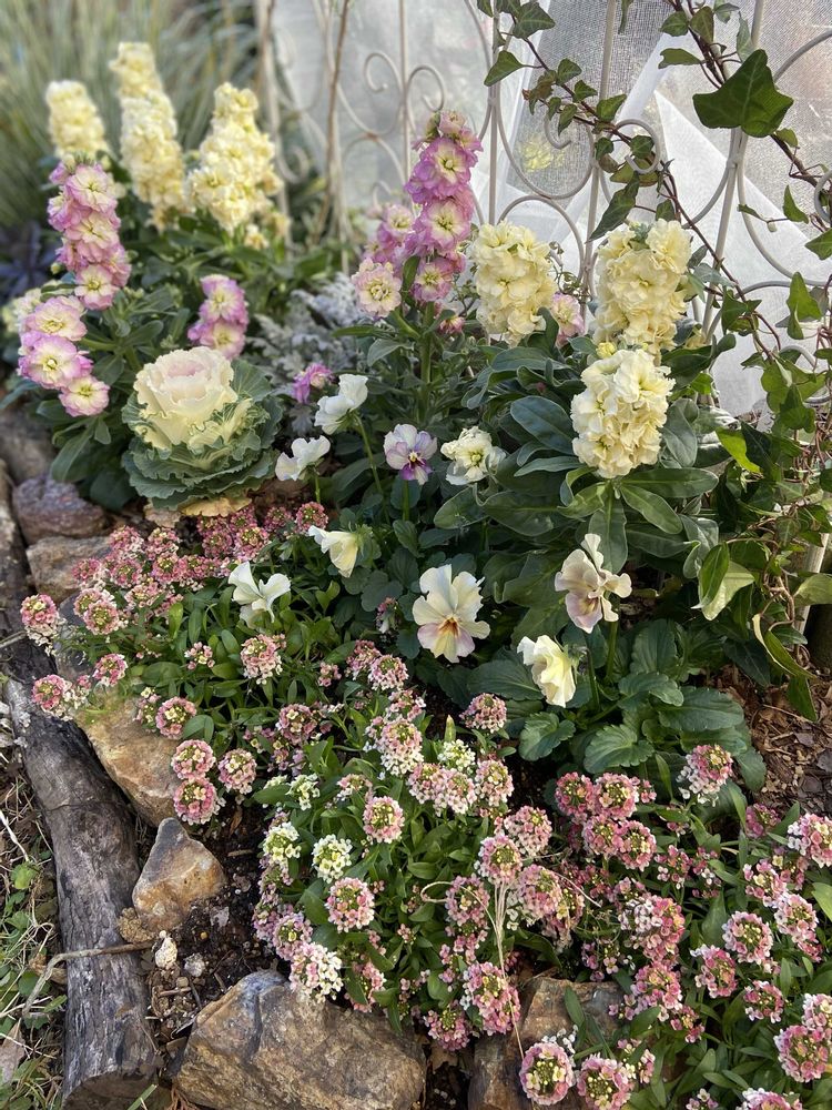 ストックはピンク✖️2、クリーム✖️2植えてますよ😊