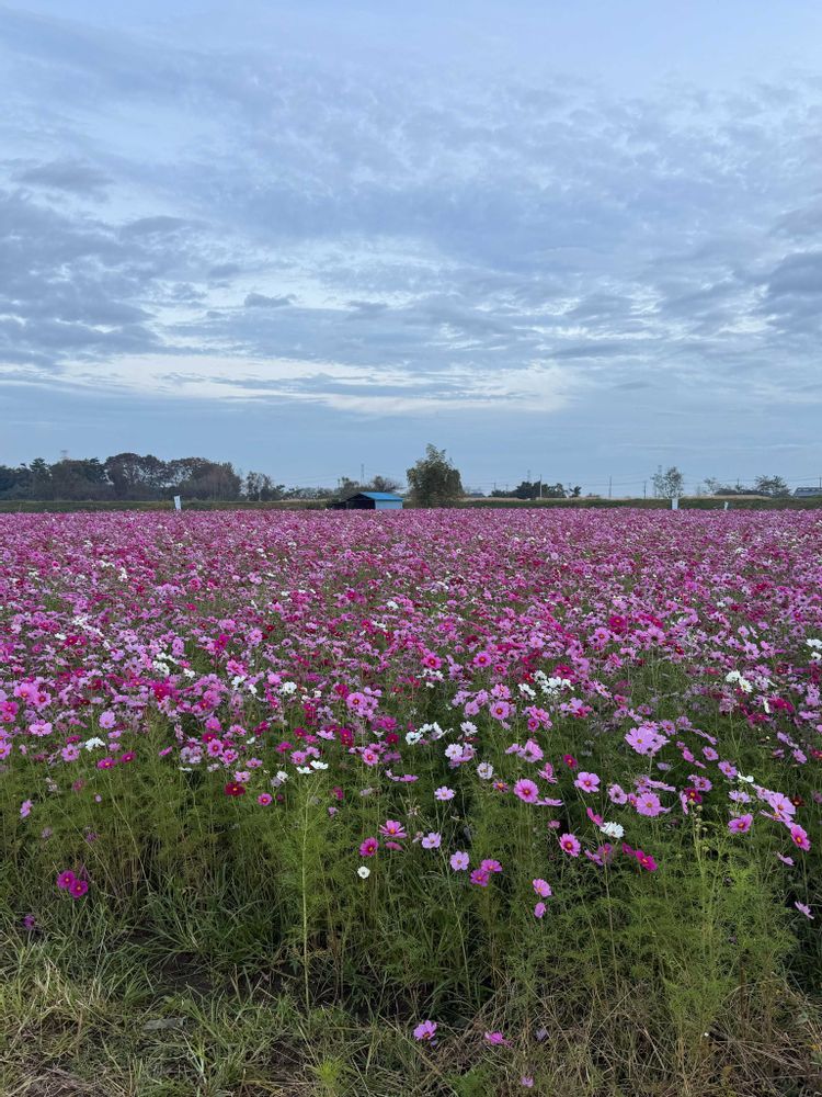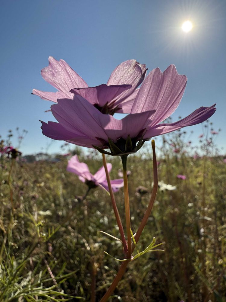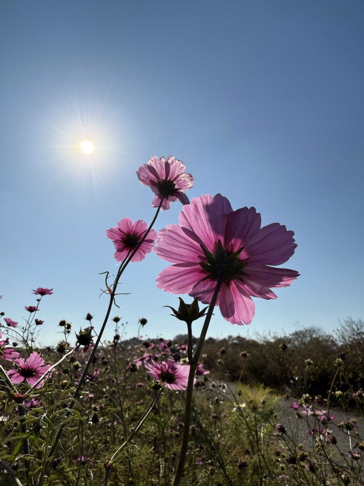 コスモス畑にはまだ数輪の花が太陽☀️に輝き、最後の華(花)を魅せてくれていた。😊👍🎶📸