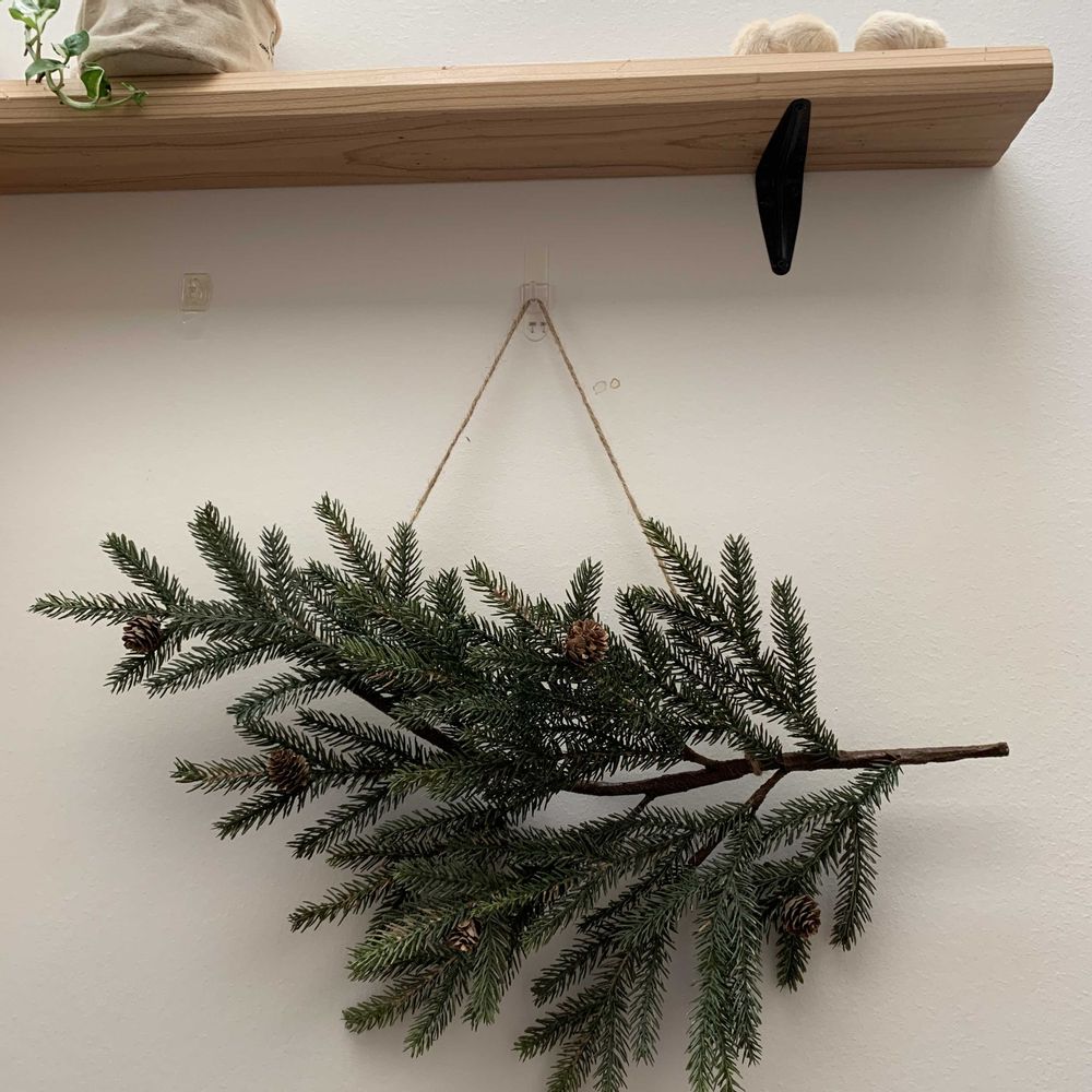 モミの枝ツリーにデコレーションしたら、ニャンズがジャンプして遊びそう🥳