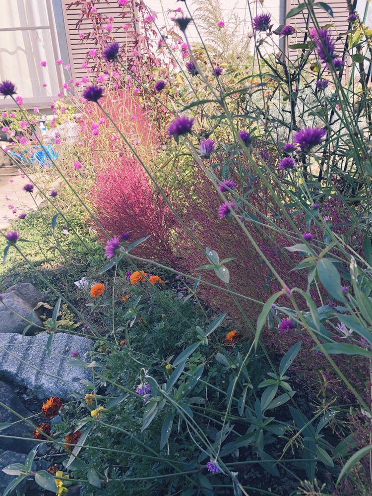 犬のソラマメと一緒に種きからの花壇と野菜作りを楽しんでます ドライフラワーも楽しんでます