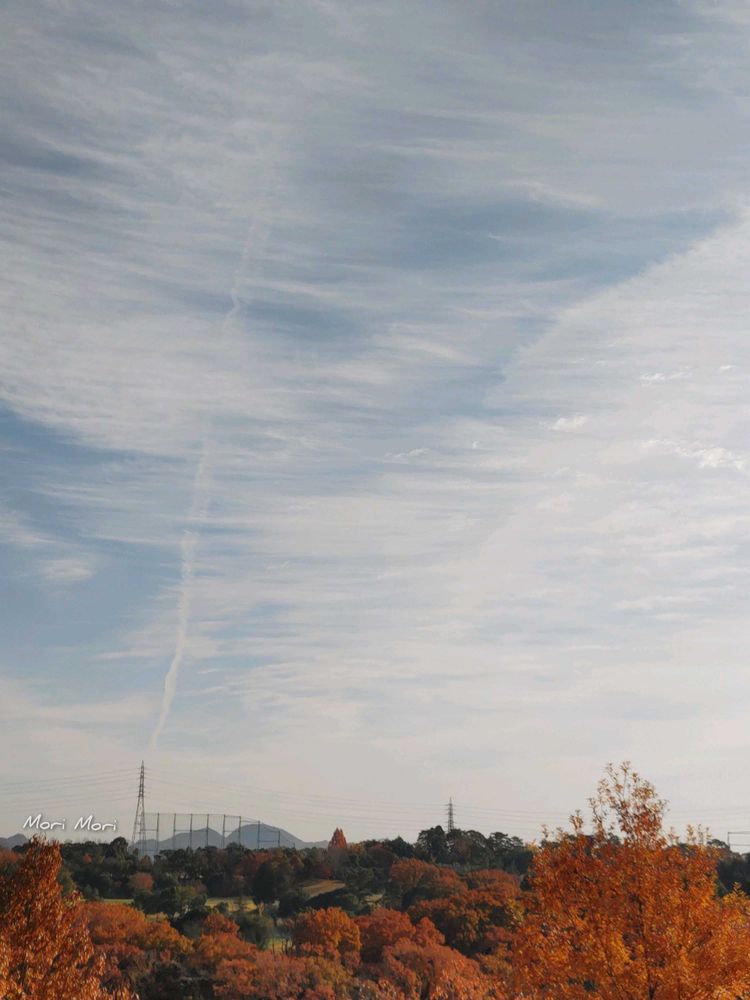 今の空 飛行機雲と刷毛ではいたような、何雲というのかな?