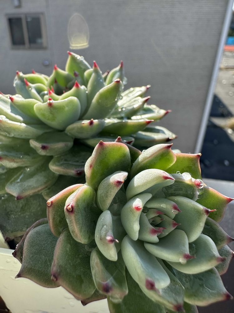 白牡丹は多肉始めた頃綺麗になってたのが梅雨に触った瞬間全部葉が落ちてショックだった😨