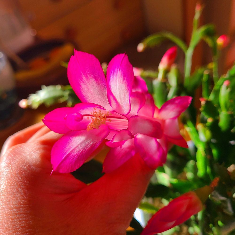 1枚目の時、ホントに花芽付くかな?と思ってたら、あれよあれよと蕾が付いて、寒くなったから室内に入れたら、咲いてくれました💕次も控えてます🤭昨年の購入苗です