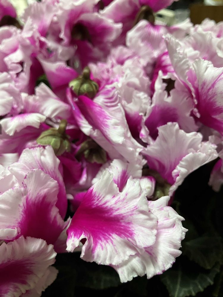 とても可愛いフリルの花びらとピンク🩷と白🤍のコントラストがステキで、私好みのシクラメンを選んでくれたみたいです🩷🤍🪴😊