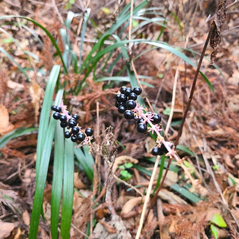 その林の中に残るヤブランの黒い果実はまるで宝石のようですね😊(* .ˬ.)⁾⁾( ⸝⸝ᴖ ̫ᴖ⸝⸝ )
