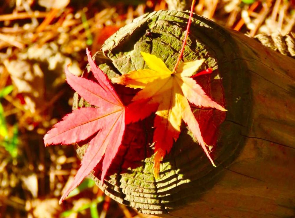 切り株に落ち葉が落ちている様子も撮りたくて、落ち葉を置きました(๑>◡<๑)🍁✨♡